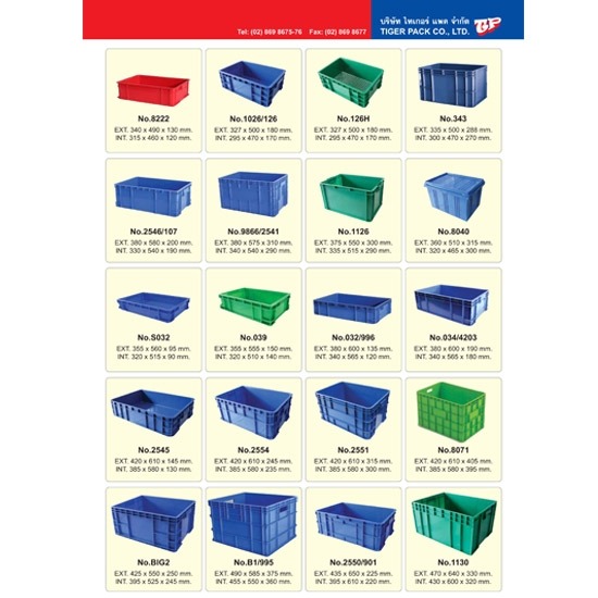 แหล่งผลิต และขายส่งลังพลาสติกทึบ ลังผลไม้พลาสติกทึบ ลังใส่ของพลาสติก ถาดพลาสติก ลังใส่อะไหล่ บรรจุภัณฑ์พลาสติก ราคาไม่แพง มีหลายรุ่นให้เลือก แนะนำ ไทเกอร์ แพค ขายส่งลังพลาสติก ขายปลีกลังพลาสติกทึบ สินค้าคุณภาพดี รูปแบบทรงทันสมัย ตอบโจทย์ ทั้งด้านงบประมาณและราคา โดยทีมงานมืออาชีพที่ใส่ใจทุกรายละเอียดในการสั่งซื้อ คลิกชมผลงานเพิ่มเติม http://www.ลังพลาสติกพาเลทพลาสติก.com หรือติดต่อสอบถามราคา Tel : 08-9115-8090 , 0-2869-8675-6