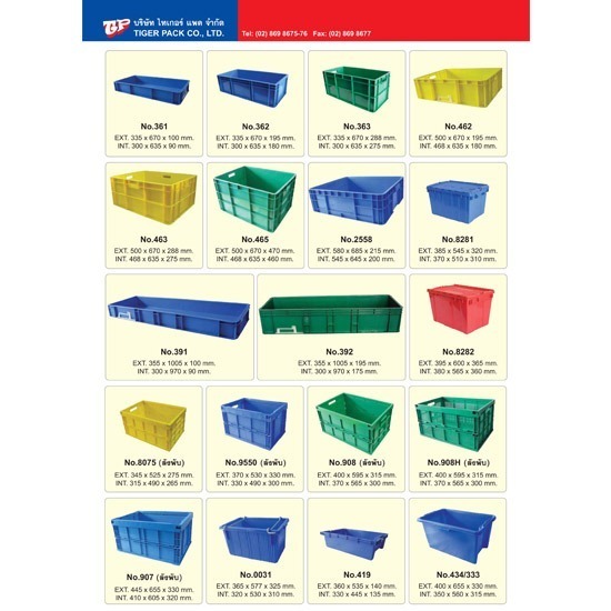 แหล่งผลิต และขายส่งลังพลาสติกทึบ ลังผลไม้พลาสติกทึบ ลังใส่ของพลาสติก ถาดพลาสติก ลังใส่อะไหล่ บรรจุภัณฑ์พลาสติก ราคาไม่แพง มีหลายรุ่นให้เลือก แนะนำ ไทเกอร์ แพค ขายส่งลังพลาสติก ขายปลีกลังพลาสติกทึบ สินค้าคุณภาพดี รูปแบบทรงทันสมัย ตอบโจทย์ ทั้งด้านงบประมาณและราคา โดยทีมงานมืออาชีพที่ใส่ใจทุกรายละเอียดในการสั่งซื้อ คลิกชมผลงานเพิ่มเติม http://www.ลังพลาสติกพาเลทพลาสติก.com หรือติดต่อสอบถามราคา Tel : 08-9115-8090 , 0-2869-8675-6